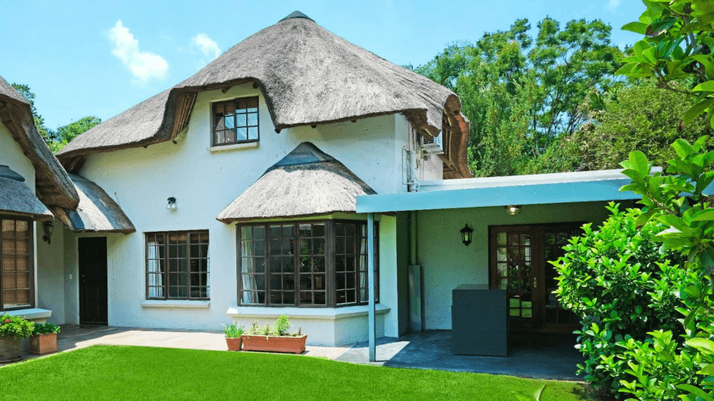 Flamink Place is a self-catering, thatched-roof cottage that is situated adjacent to the N1 highway, in Douglasdale. The property is ideally located 3.7 km from Monte Casino and 12 km from Sandton CBD. Solar power ensures that the property isn’t affected by load shedding